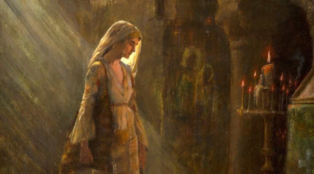 Even after the Resurrection and Ascension, when so many questions remain unanswered, when the disciples are still downcast and doubtful, she abides with them and prays with them for nine days (Acts 1:10-14). They learn from her the capacity for passion and compassion that she exhibited so beautifully at each earlier moment of her discipleship, a capacity which grew and deepened as each mystery unfolded.